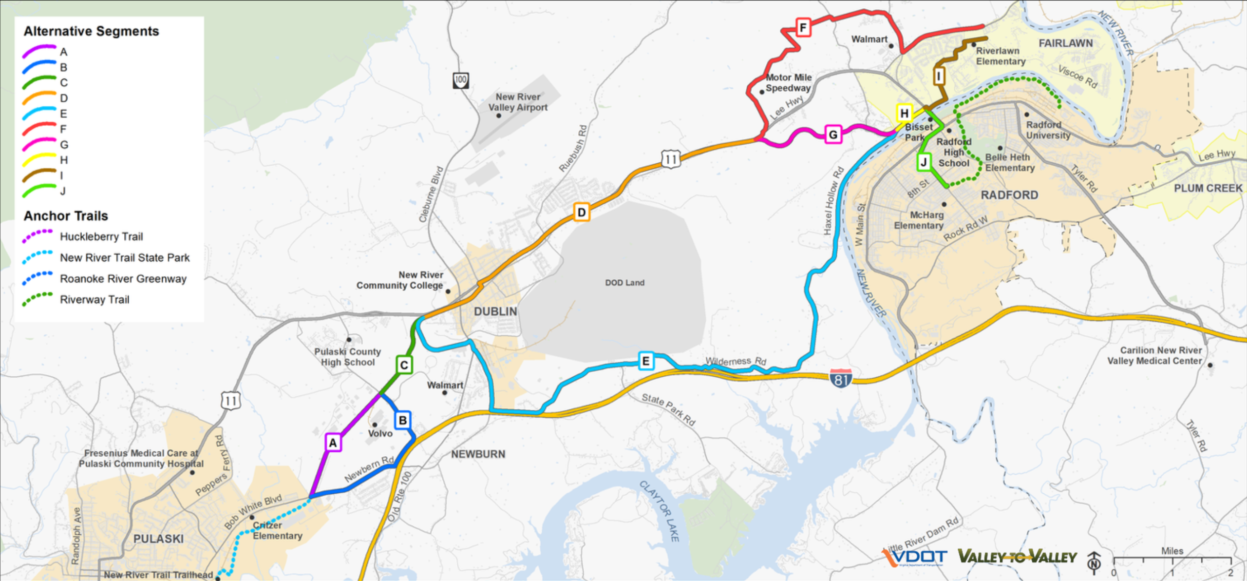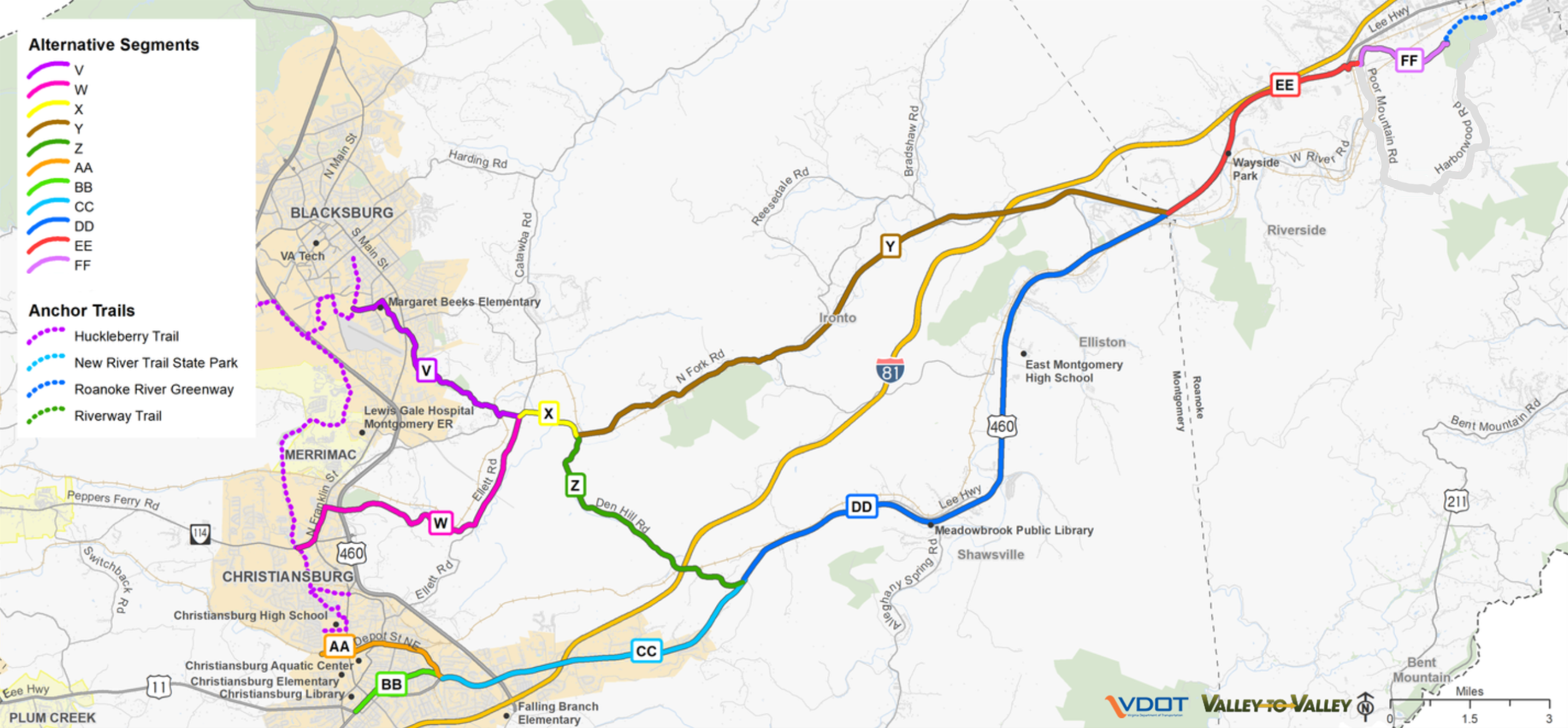 The complete trail study corridor has been broken down into three sections containing potential route "segments" that follow along the path of the future corridor. Each section overview has a corresponding survey below to define the optimal route for that section. Please take a few minutes to select your connection preferences below and/or build your own route!